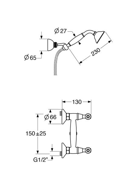 Iris – Gruppo doccia esterno senza duplex e varie rifiniture
