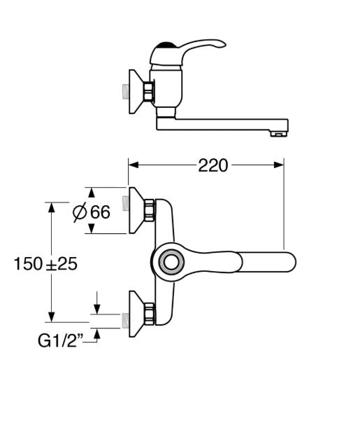 Fly – Monocomando lavello a muro leva clinica, con canna piatta 20 cm e varie rifiniture