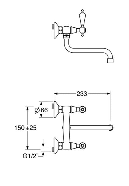 Fly – Monocomando lavello a muro con canna “S” da 18 cm e varie rifiniture