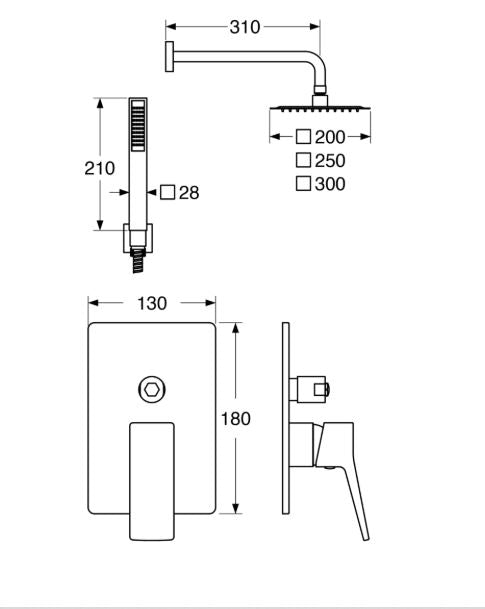 Rubino – Kit doccia incasso con deviatore e soffione anticalcare in acciaio